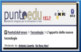 Moderatore e Tutor PuntoEdu /MIUR 2003/04 (Forum formazione tecnologica Piano For Tic di " Scienza e Tecnologia ITC e discipline")